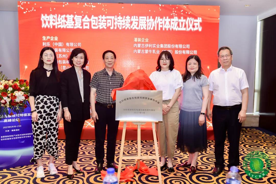 6月20日,电子游艺平台官网大全网址是多少 参加了资源强制回收产业技术创新战略联盟在天津举办的第七届再生资源回收产业大会。大会期间,公司作为联盟理事单位和饮料纸基复合包装回收利用专委会(以下简称:专委会)成员,参与并见证了“饮料纸基复合包装可持续发展协作体”(以下简称:协作体)成立暨揭牌仪式。
